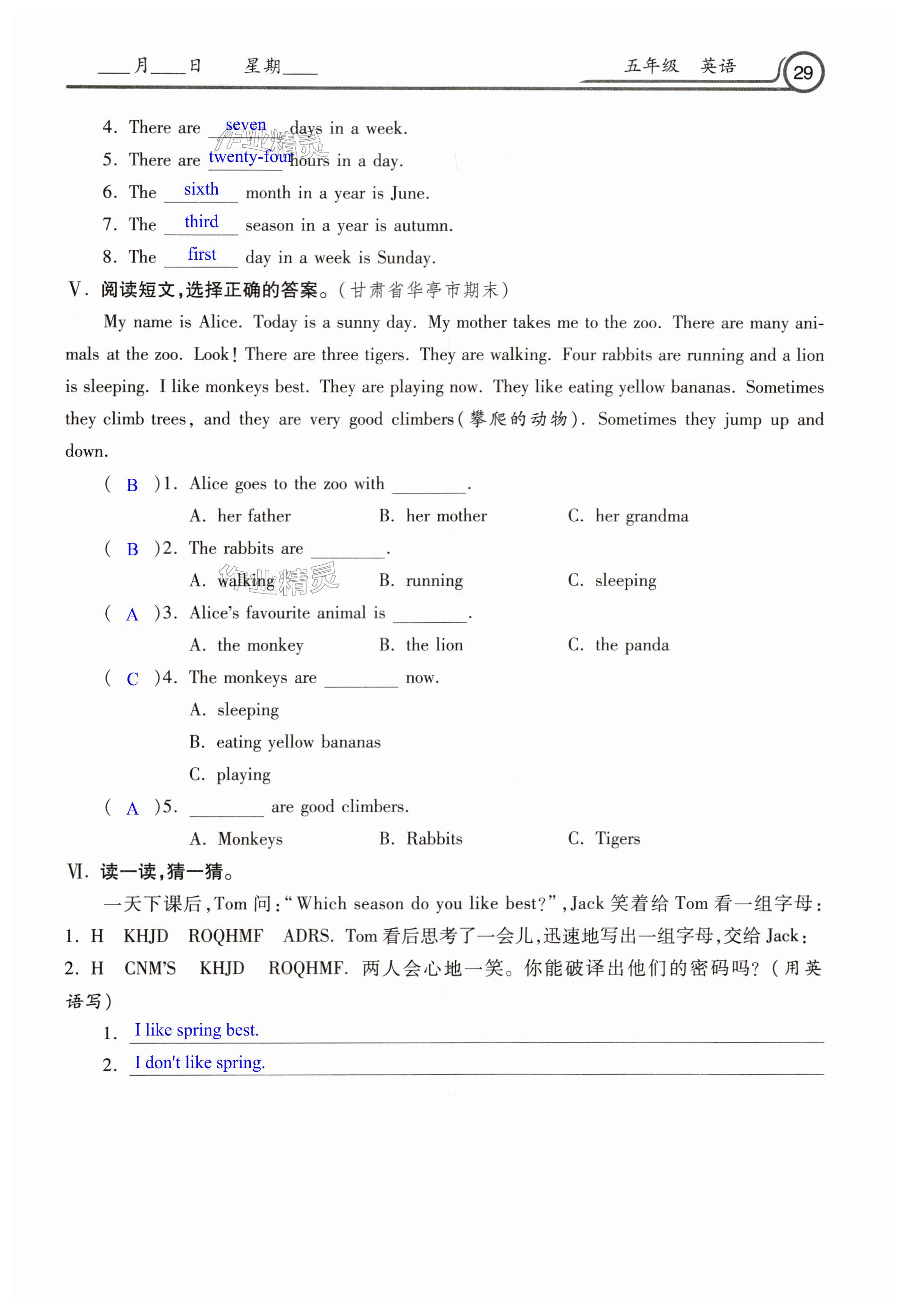 注:目前有些书本章节名称可能整理的还不是很完善,但都是按照顺序排列的,请同学们按照顺序仔细查找。练习册 2025年暑假生活河北美术出版社五年级英语 答案主要是用来给同学们做完题方便对答案用的,请勿直接抄袭。