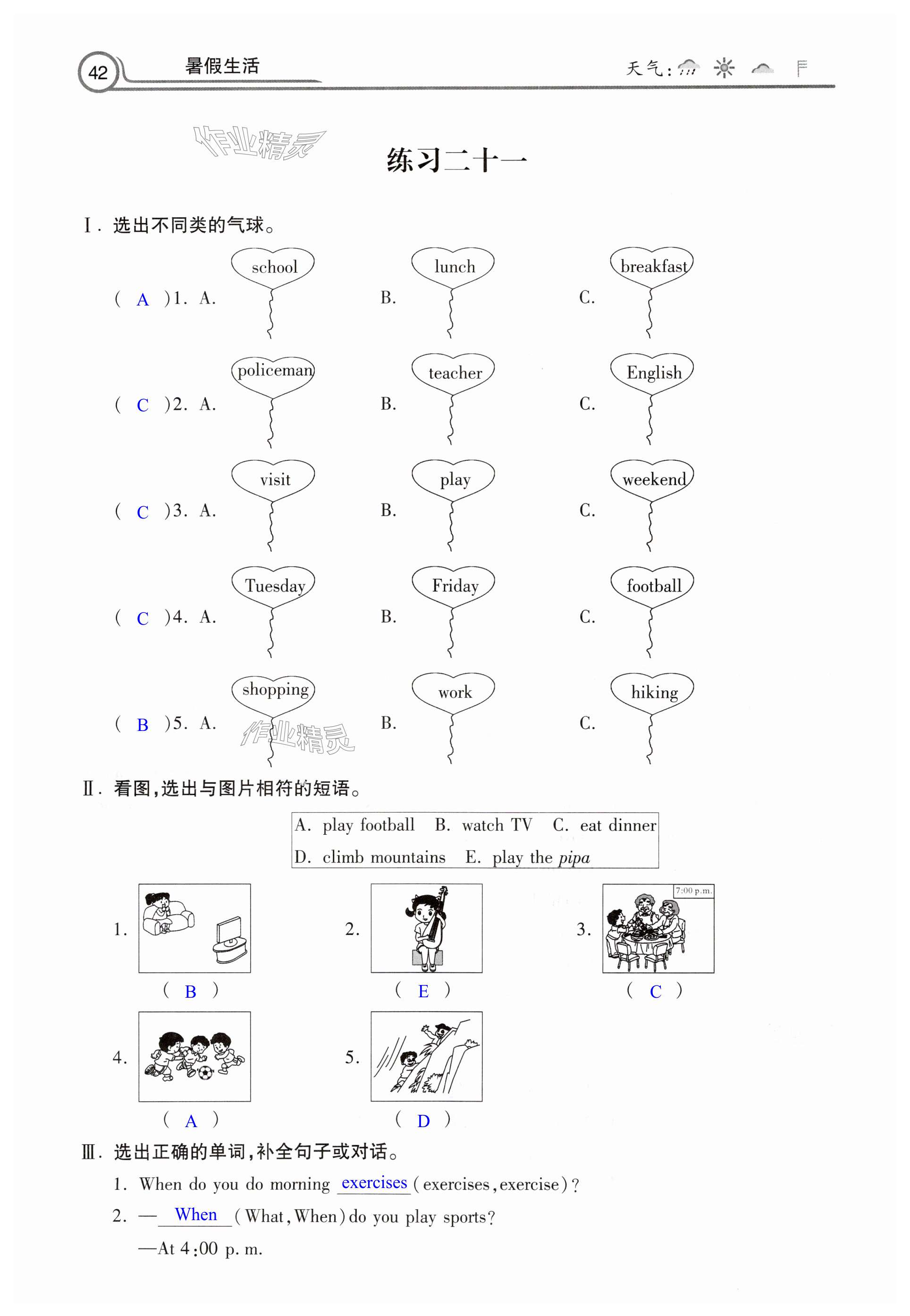 注:目前有些书本章节名称可能整理的还不是很完善,但都是按照顺序排列的,请同学们按照顺序仔细查找。练习册 2025年暑假生活河北美术出版社五年级英语 答案主要是用来给同学们做完题方便对答案用的,请勿直接抄袭。