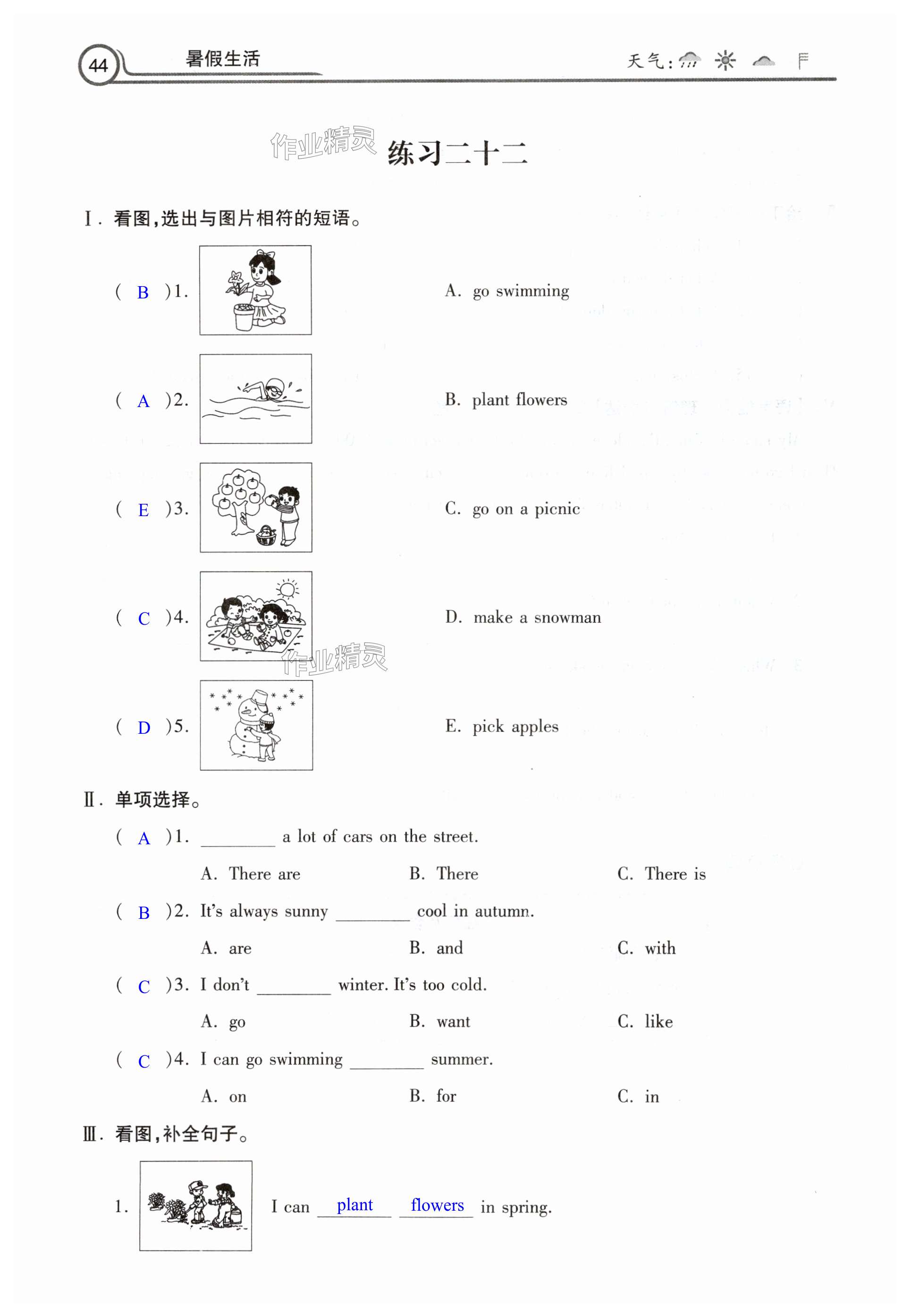 注:目前有些书本章节名称可能整理的还不是很完善,但都是按照顺序排列的,请同学们按照顺序仔细查找。练习册 2025年暑假生活河北美术出版社五年级英语 答案主要是用来给同学们做完题方便对答案用的,请勿直接抄袭。