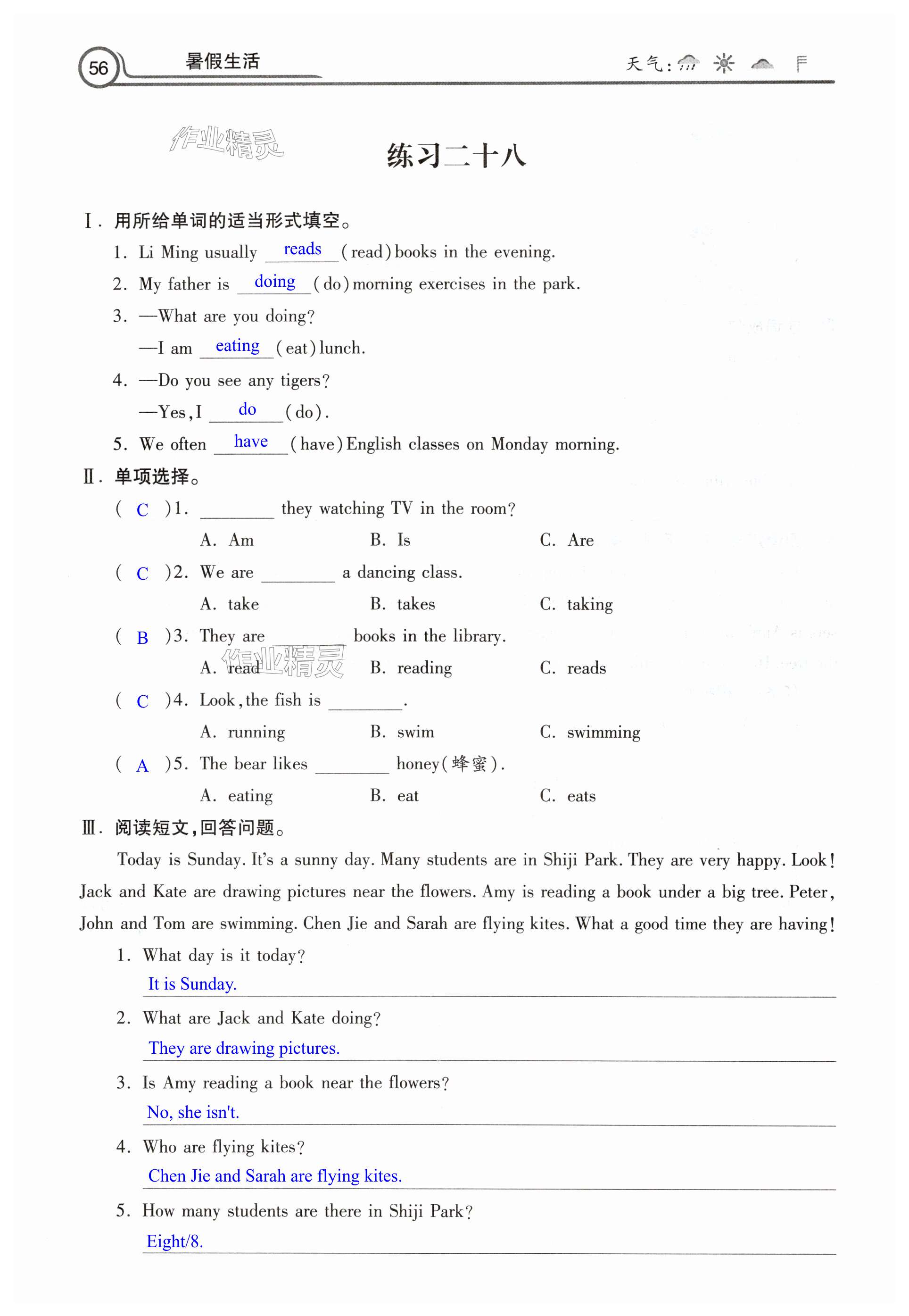 注:目前有些书本章节名称可能整理的还不是很完善,但都是按照顺序排列的,请同学们按照顺序仔细查找。练习册 2025年暑假生活河北美术出版社五年级英语 答案主要是用来给同学们做完题方便对答案用的,请勿直接抄袭。