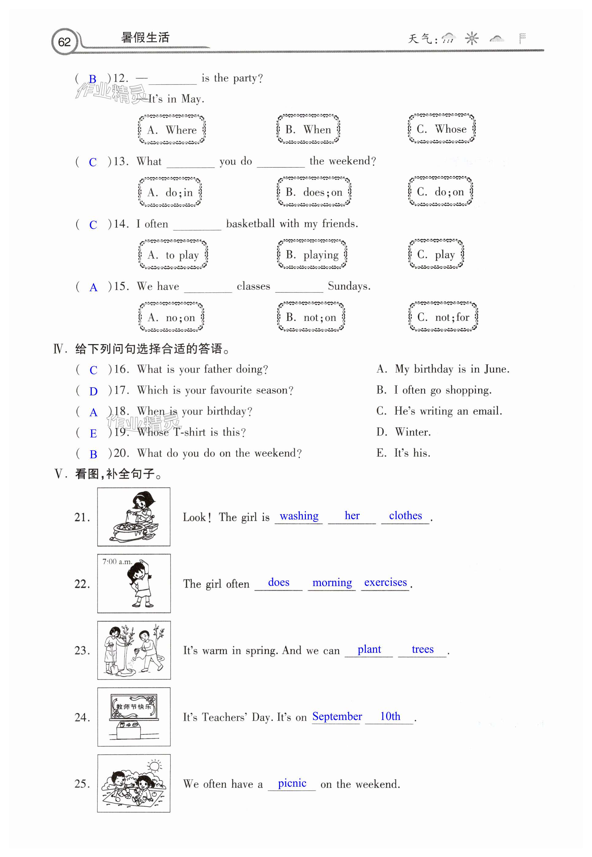 注:目前有些书本章节名称可能整理的还不是很完善,但都是按照顺序排列的,请同学们按照顺序仔细查找。练习册 2025年暑假生活河北美术出版社五年级英语 答案主要是用来给同学们做完题方便对答案用的,请勿直接抄袭。