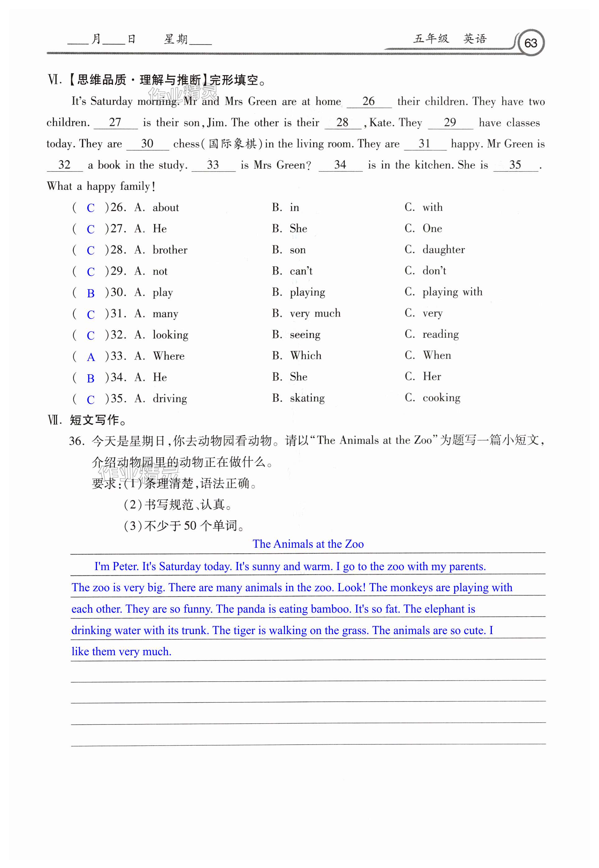 注:目前有些书本章节名称可能整理的还不是很完善,但都是按照顺序排列的,请同学们按照顺序仔细查找。练习册 2025年暑假生活河北美术出版社五年级英语 答案主要是用来给同学们做完题方便对答案用的,请勿直接抄袭。