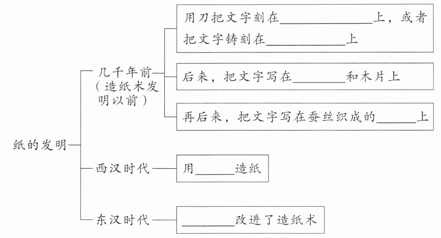 2. 【思维能力·归纳整理】根据课文《纸的发明》完成下面的思维导图。