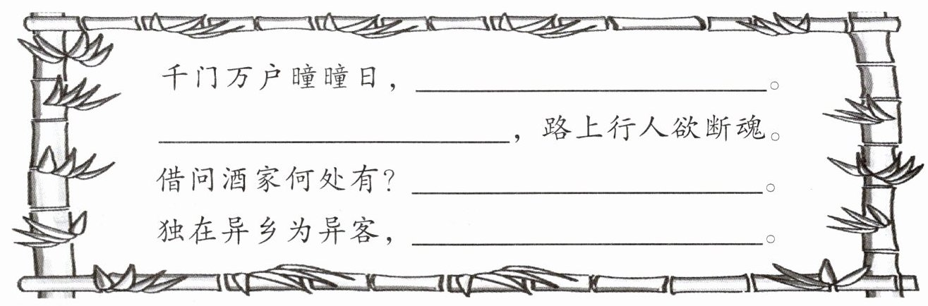 四、王明整理出一个古诗小集锦,但遗漏了些诗句。请你帮他补充完整吧!