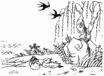 那边还有飞倦了的几对,闲散地在纤细的电线上休憩——嫩蓝的春天,几支木杆,几痕细线连于杆与杆之间,线上停着几个小黑点,那便是燕子。多么有趣的一幅图画呀!