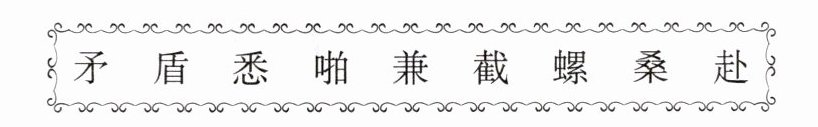 (1)矛 兼 (2)悉 桑 (3)啪 螺 (4)盾 截 赴
