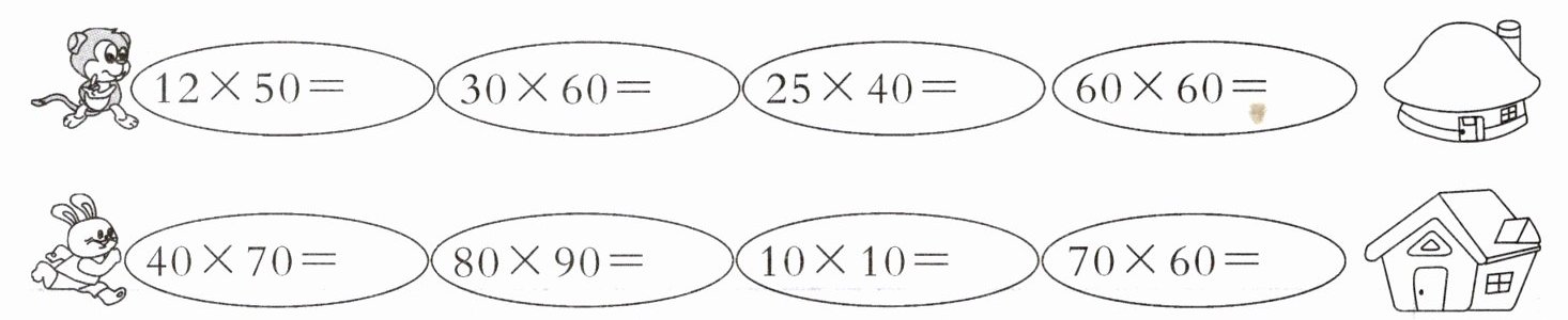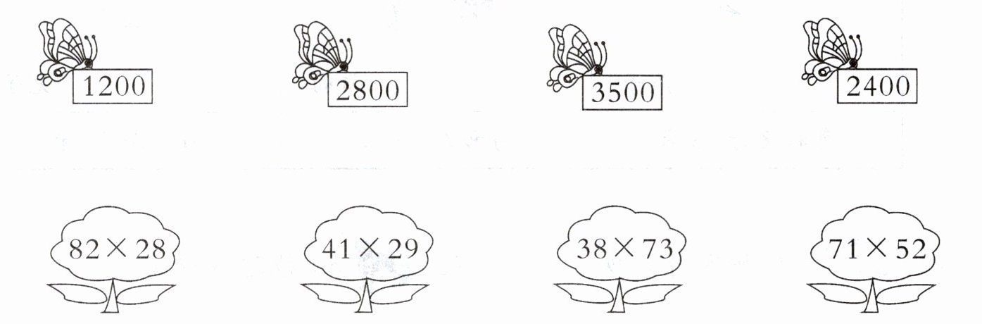 【答案】:$1200$与$41×29$相连;$2800$与$38×73$相连;$3500$与$71×52$相连;$2400$与$82×28$相连。