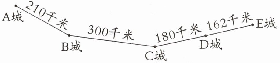 |(2)从 A 城到 D 城,平均每相邻两个城市间的路程是多少千米?