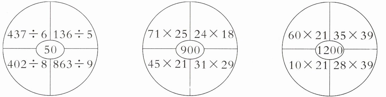 三、估一估哪两个数的积或商最接近圈中的数,在它上面画“√”。