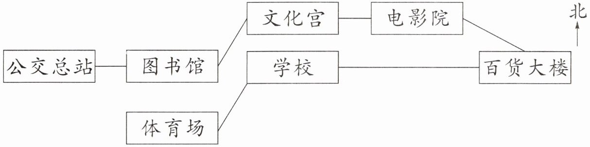)行驶到文化宫。2. 小文乘公交车从电影院出发,向(