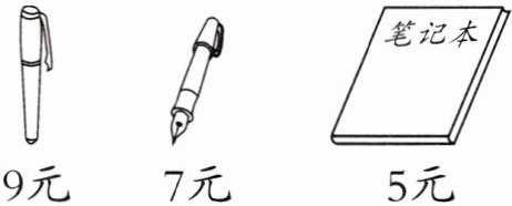 2. (黑龙江省齐齐哈尔市拜泉县期末)王老师到文具店买文具,两种钢笔各买了5支,买笔记本用去的钱是买这两种钢笔用去的钱的总数的一半。王老师买了