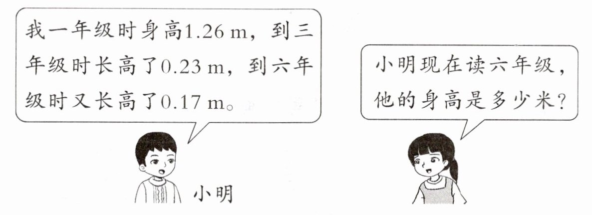 3.【开放题】悦悦喜欢和爸爸比身高,她总想着快点长大。____,她站在离地$0.6\mathrm{m}$高的椅子上,比爸爸高$0.18\mathrm{m}$。爸爸的身高是多少米?