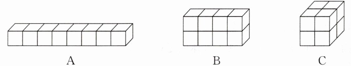 1. 现有 8 个棱长是 1 cm 的小正方体,摆成下面几种形状。