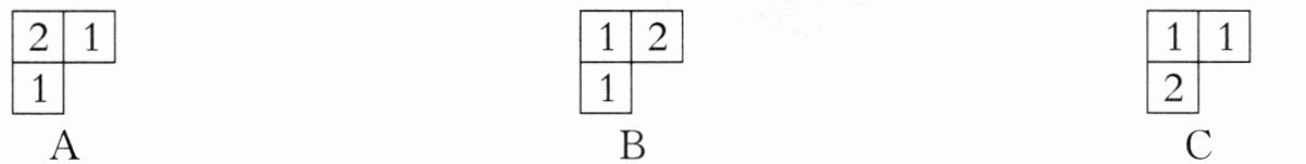 2. 从上面看到的图形如下图所示,每个正方形上面的数字表示在这个位置上所用的小正方体的个数,其中数字标正确的是(