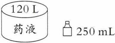 1. (河北省石家庄市桥西区期末)下图中一大桶药液相当于多少瓶 250 mL 的药液?