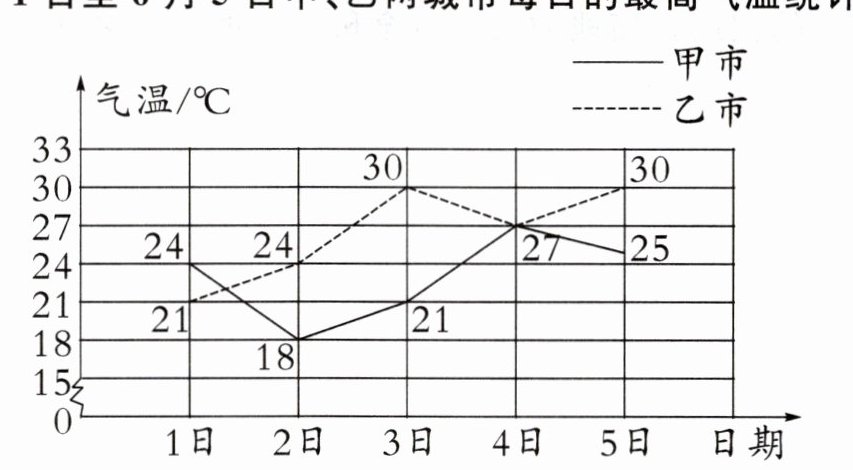 6月1日至6月5日甲、乙两城市每日的最高气温统计图