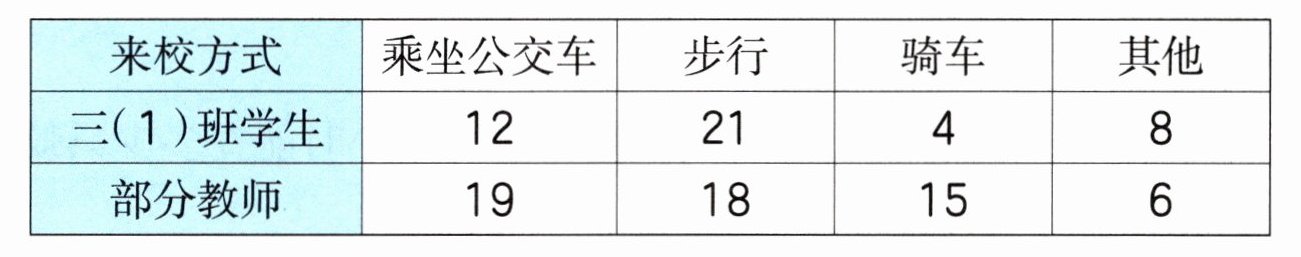 下面是实验小学三(1)班学生和部分教师来校方式情况统计表。