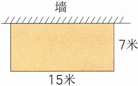 5.如图,王奶奶靠墙用篱笆围成了一个长方形的鸡圈,鸡圈长15米,宽7米,篱笆有多长?鸡圈的占地面积是多少平方米?