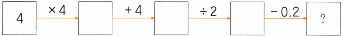 根据逆推思想,从后往前逐步计算:$4× 4=16$;$16+4=20$;$20{÷} 2=10$;$10-0.2=9.8$。所以这个数是$9.8$。