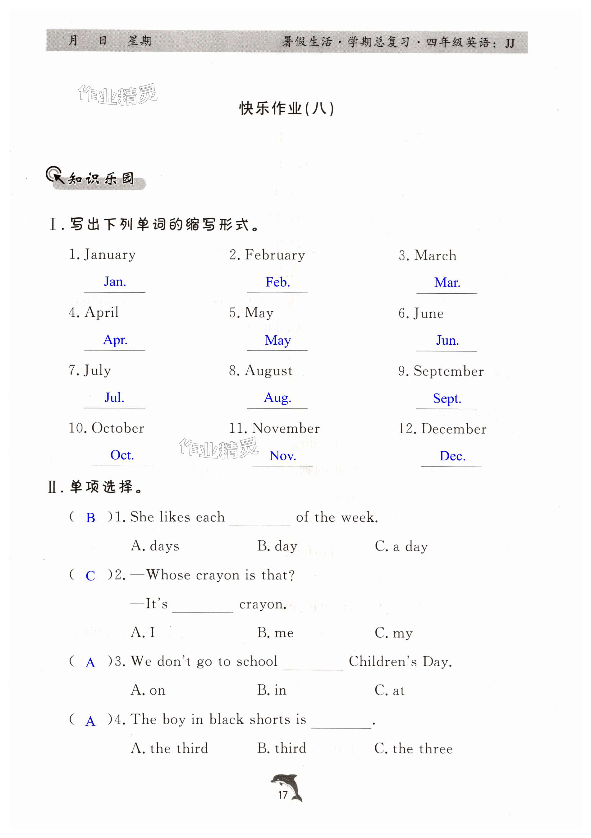注:目前有些书本章节名称可能整理的还不是很完善,但都是按照顺序排列的,请同学们按照顺序仔细查找。练习册 2025年暑假生活学期总复习四年级英语冀教版 答案主要是用来给同学们做完题方便对答案用的,请勿直接抄袭。