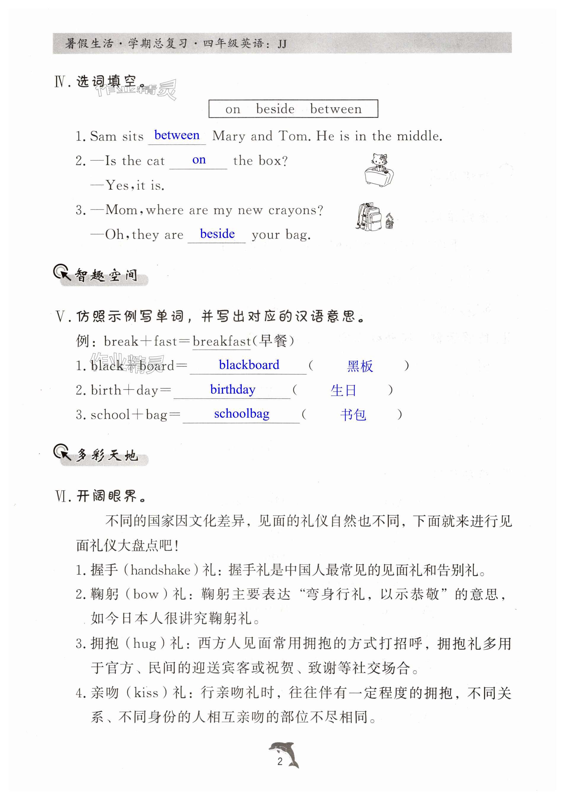 注:目前有些书本章节名称可能整理的还不是很完善,但都是按照顺序排列的,请同学们按照顺序仔细查找。练习册 2025年暑假生活学期总复习四年级英语冀教版 答案主要是用来给同学们做完题方便对答案用的,请勿直接抄袭。