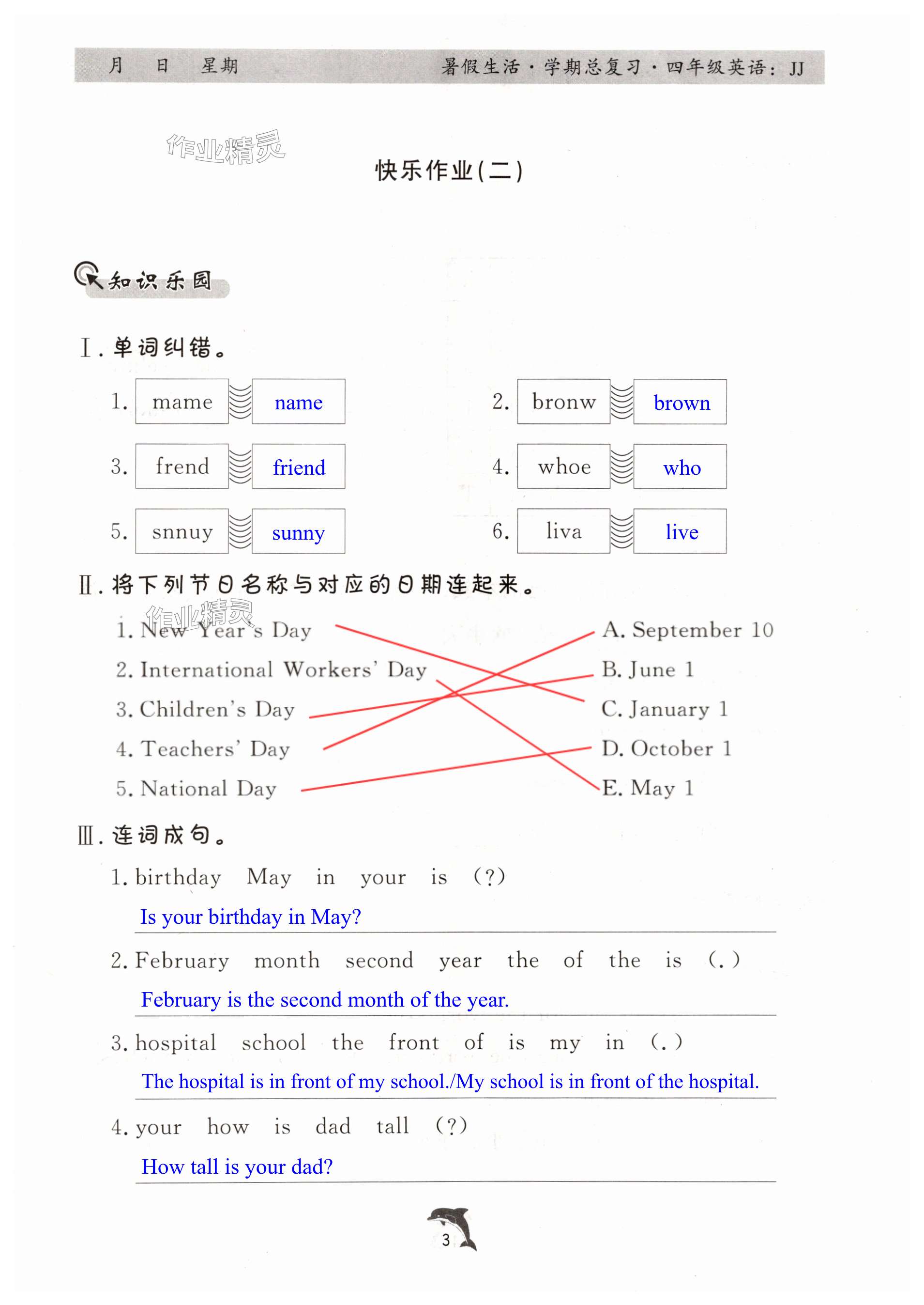 注:目前有些书本章节名称可能整理的还不是很完善,但都是按照顺序排列的,请同学们按照顺序仔细查找。练习册 2025年暑假生活学期总复习四年级英语冀教版 答案主要是用来给同学们做完题方便对答案用的,请勿直接抄袭。