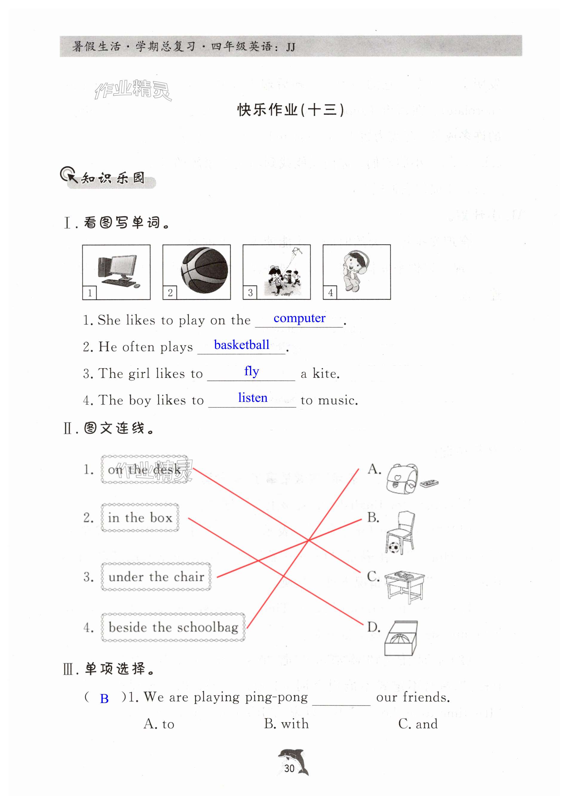 注:目前有些书本章节名称可能整理的还不是很完善,但都是按照顺序排列的,请同学们按照顺序仔细查找。练习册 2025年暑假生活学期总复习四年级英语冀教版 答案主要是用来给同学们做完题方便对答案用的,请勿直接抄袭。