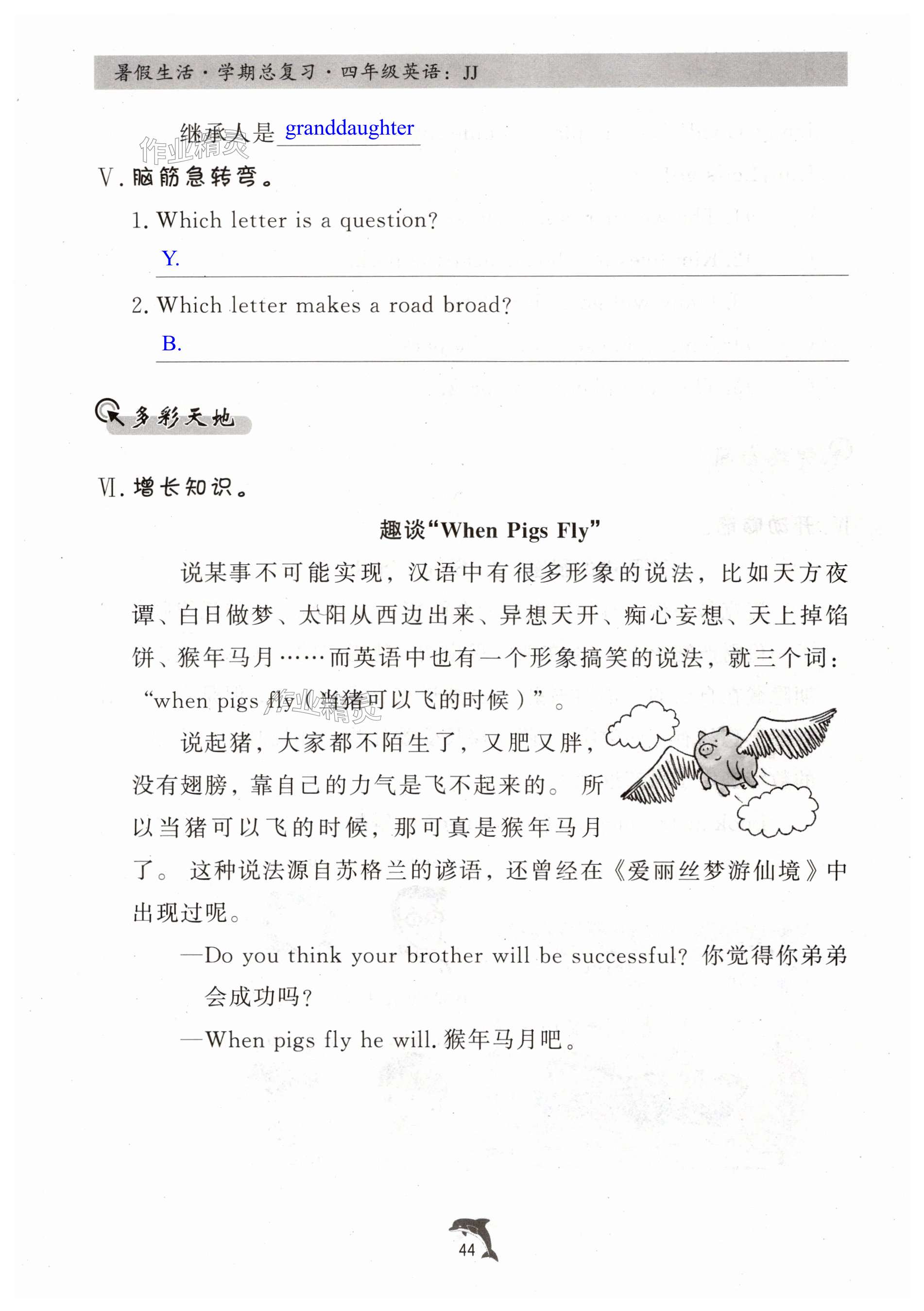 注:目前有些书本章节名称可能整理的还不是很完善,但都是按照顺序排列的,请同学们按照顺序仔细查找。练习册 2025年暑假生活学期总复习四年级英语冀教版 答案主要是用来给同学们做完题方便对答案用的,请勿直接抄袭。