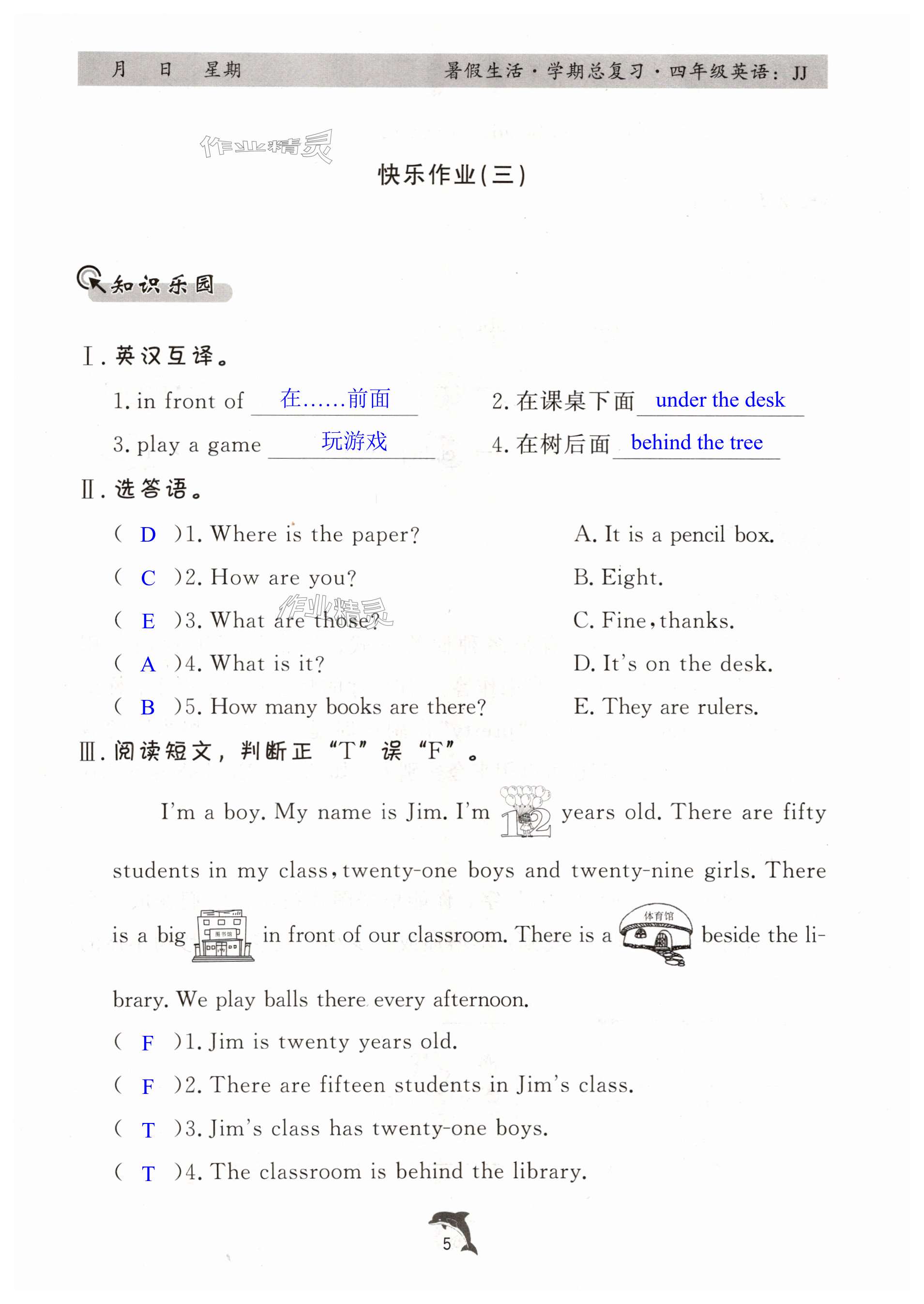 注:目前有些书本章节名称可能整理的还不是很完善,但都是按照顺序排列的,请同学们按照顺序仔细查找。练习册 2025年暑假生活学期总复习四年级英语冀教版 答案主要是用来给同学们做完题方便对答案用的,请勿直接抄袭。