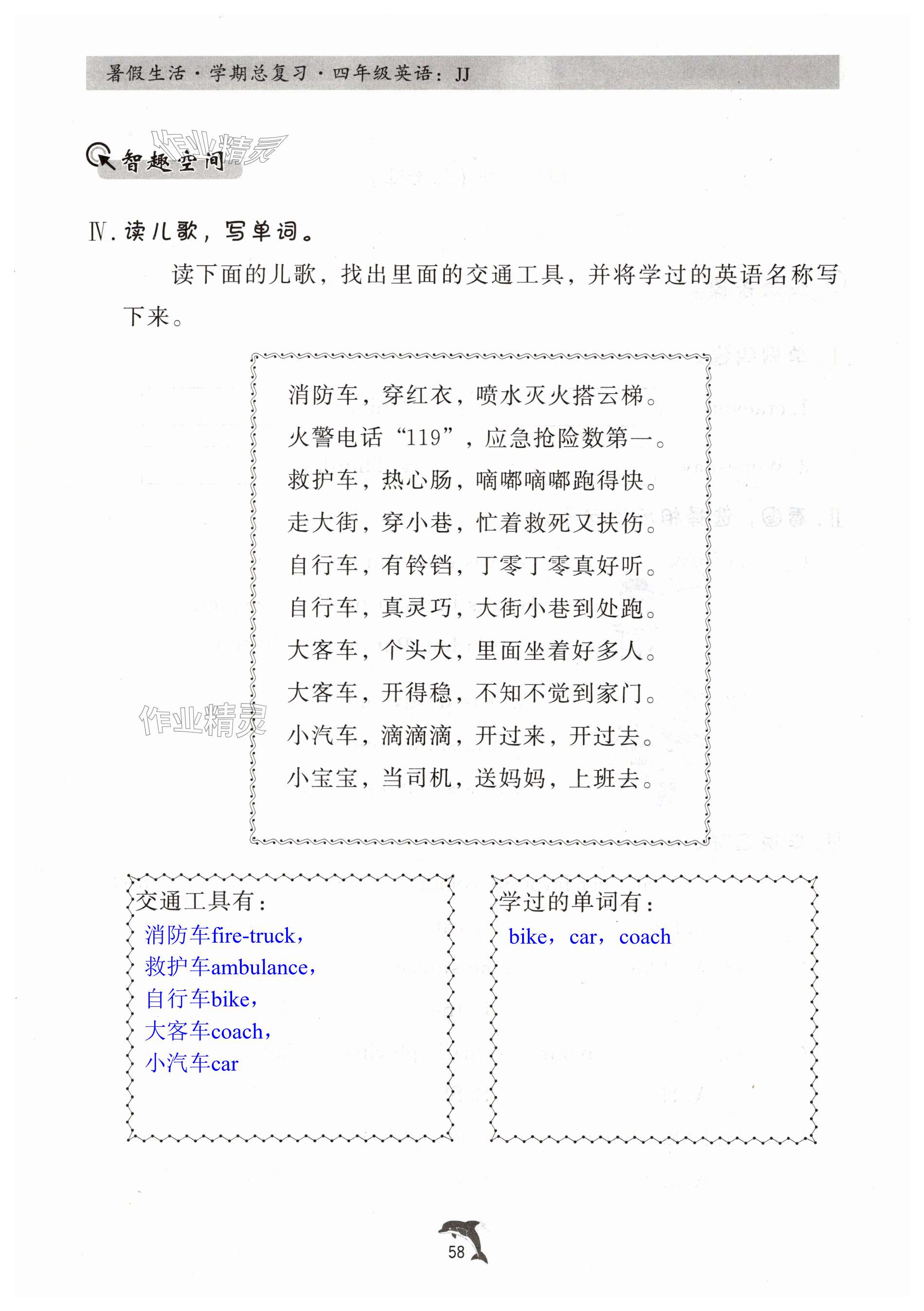 2025年暑假生活学期总复习四年级英语冀教版