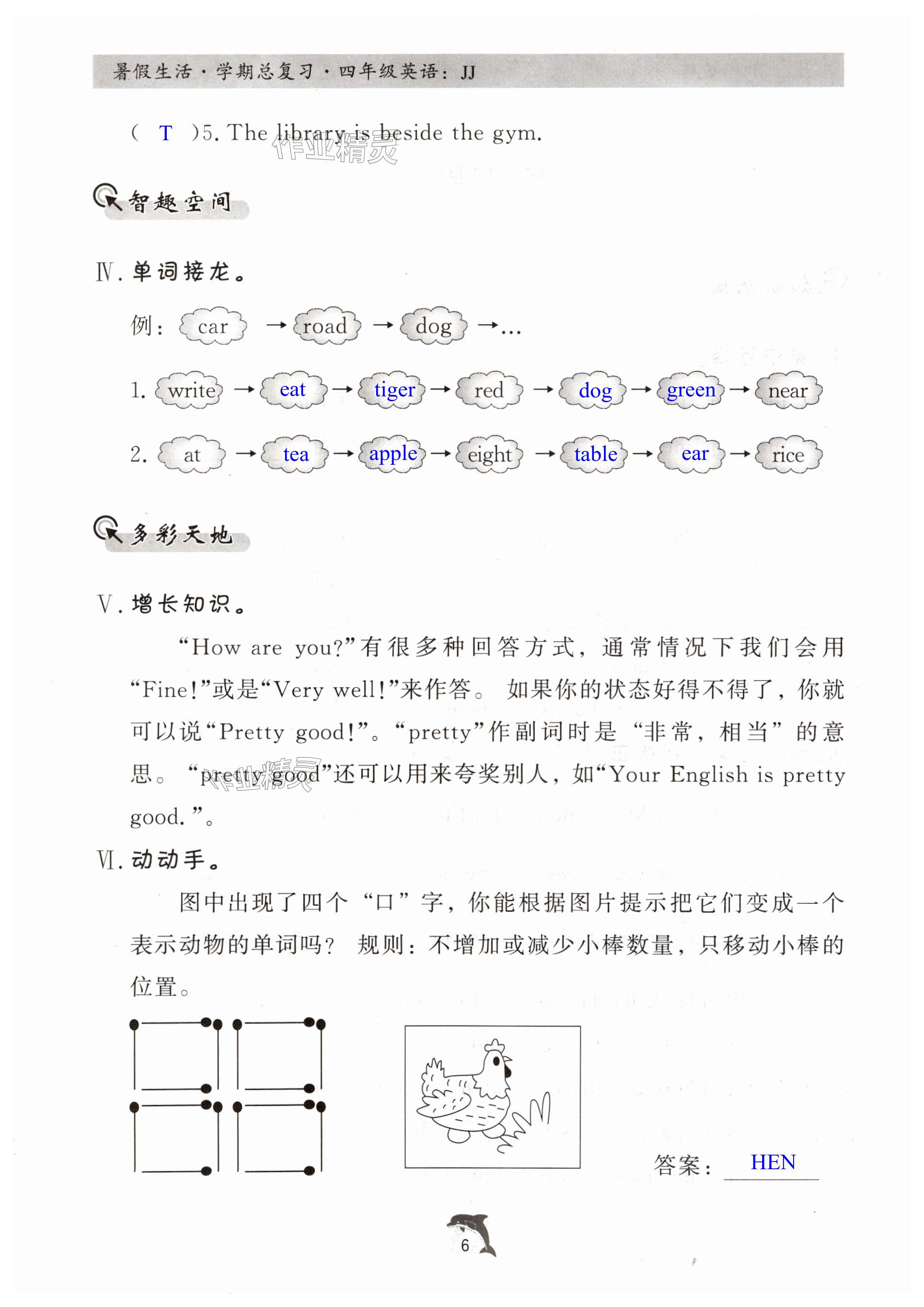 注:目前有些书本章节名称可能整理的还不是很完善,但都是按照顺序排列的,请同学们按照顺序仔细查找。练习册 2025年暑假生活学期总复习四年级英语冀教版 答案主要是用来给同学们做完题方便对答案用的,请勿直接抄袭。