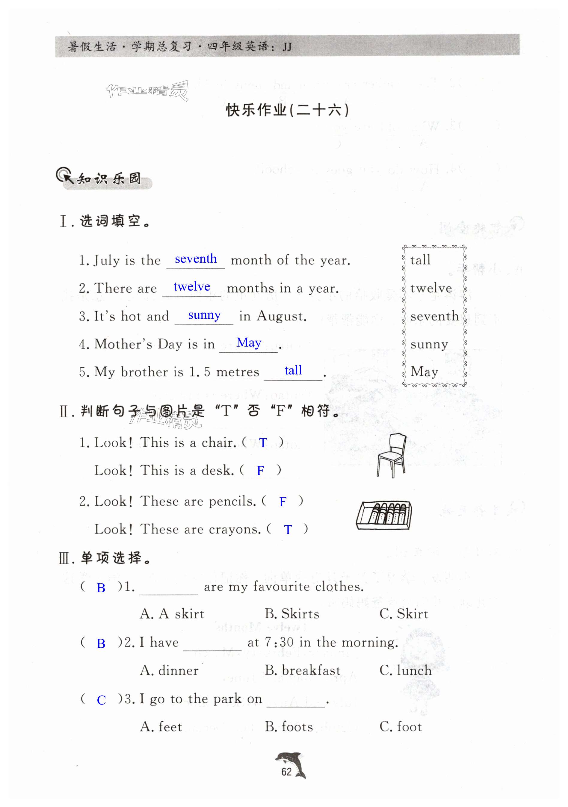 注:目前有些书本章节名称可能整理的还不是很完善,但都是按照顺序排列的,请同学们按照顺序仔细查找。练习册 2025年暑假生活学期总复习四年级英语冀教版 答案主要是用来给同学们做完题方便对答案用的,请勿直接抄袭。