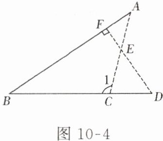 2. 如图 10 - 4,已知$DF\perp AB$,$\angle A = 40^{\circ}$,$\angle D = 43^{\circ}$,求$\angle 1$的度数为