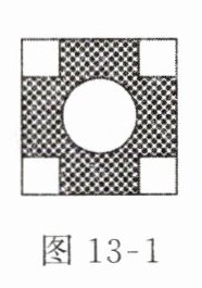 1. 某市一所中学在教学楼前设计了一个小广场(图13 - 1),正方形广场地面的边长为$40$米,中心建了一个直径为$20$米的圆形花坛,四角各留一个边长为$10$米的小正方形花坛,种植花草,图中阴影部分计划铺设地砖,请问:
