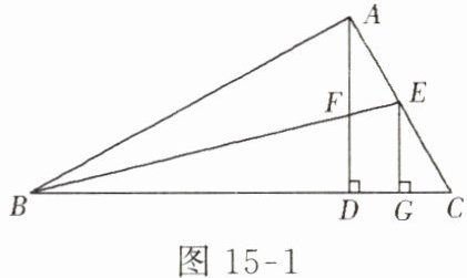 2. 如图 15 - 1,在 $ \text{Rt} \triangle ABC $ 中,$ AD $ 是斜边 $ BC $ 上的高,$ \angle ABC $ 的平分线分别交 $ AD $、$ AC $ 于 $ F $、$ E $,$ EG \perp BC $,垂足为 $ G $,下列结论中,错误的是(