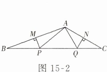 3. 如图 15 - 2 所示,$ \angle BAC = 130^{\circ} $,如果 $ MP $ 和 $ QN $ 分别垂直平分 $ AB $ 和 $ AC $,则 $ \angle PAQ $ 等于(
