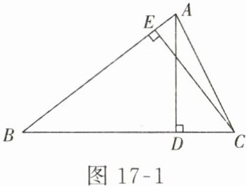 4. 如图 17 - 1,如果$\triangle ABC$中,$AD⊥BC$,$CE⊥AB$,垂足分别为$D$、$E$,且$AB = 6$,$BC = 4$,$AD = 5$,则$CE$的长为(