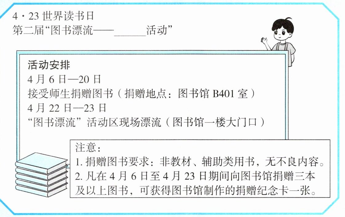 1 图书漂流活动副标题还空着,请你取个别致且吸引人的副标题。