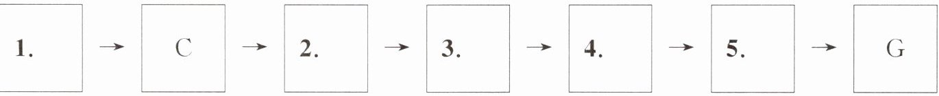 亲爱的同学们,家常菜是我们日常生活中不可或缺的一部分。今天让我们一起来了解一下如何制作一道既简单又可口的家常菜吧。下面列出了与蛋炒饭的烹饪步骤相关的英文表述,请你根据自己的理解或者和家人一起探讨后将这些步骤进行排序。请将每个步骤对应的选项填写在方框中(其中C项和G项已给出)。