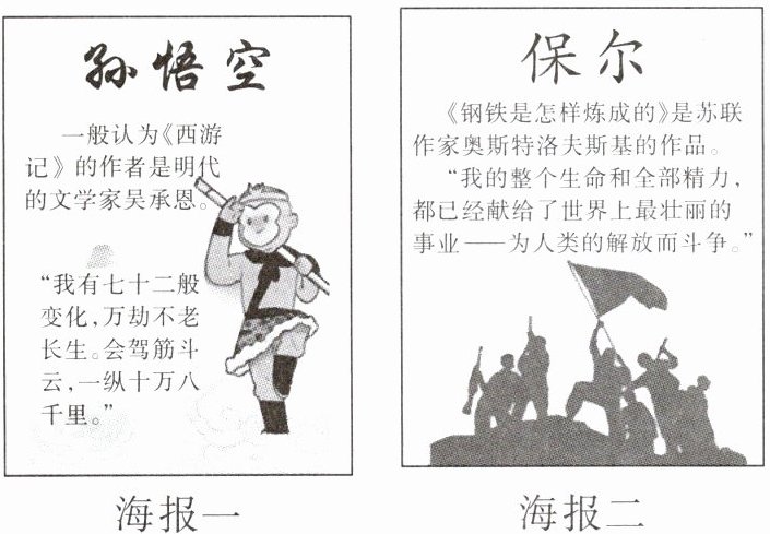 (1)下面是同学们设计的小说人物海报,请你欣赏并仿照示例,结合字体特点和人物形象,说一说为保尔选用相应字体的理由。