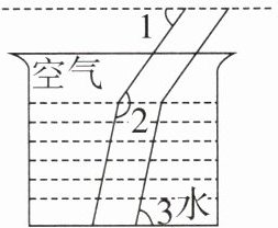 5. 光线在不同介质中的传播速度是不同的,因此当光线从空气斜射入水中时会发生折射。由于折射率相同,所以平行的光线从空气射入水中后仍然是平行的。如图,若$∠1= 55^{\circ }$,$∠2= 157^{\circ }$,则$∠3$的度数为( )。