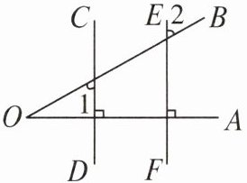 8. 如图,已知$CD⊥OA$,$EF⊥OA$,$∠1= 60^{\circ }$,求$∠2$的度数。