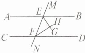 4. 如图,直线$AB和CD被直线MN$所截,$EG平分∠BEF$,$FH平分∠DFE$。当$∠GEF与∠HFE$满足什么条件时,$AB// CD$?请说明理由。