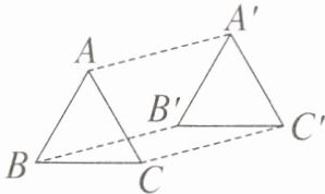 解:根据平移的性质,平移后对应点的连线平行且相等,所以 $AA' // BB'$,$BB' // CC'$,$AA' = BB'$,故A、B、C选项结论成立;平移后对应边相等,$BC$的对应边是$B'C'$,所以$BC = B'C'$,而$BC$与$A'C'$不一定相等,故D选项结论不一定成立。