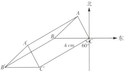3. 如图,将图中的三角形 ABC 沿着南偏西$60^{\circ }$的方向平移 4 cm,画出平移后的三角形$A'B'C'.$