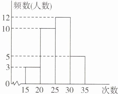 由频数分布直方图可知,仰卧起坐次数在25~30的频数为12。