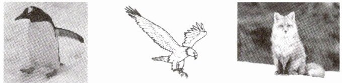 1. penguin 2. eagle 3. fox 4. tiger 5. lion
