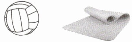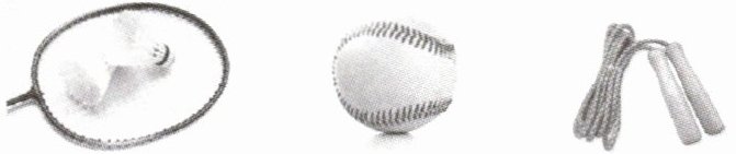 1. badminton 2. baseball 3. jump rope 4. volleyball 5. exercise mat
