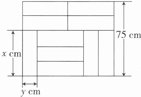 15. 如图,10 块相同的长方形墙砖拼成一个长方形,设长方形墙砖的长和宽分别为 $ x $ cm 和 $ y $ cm,则可列方程组为()