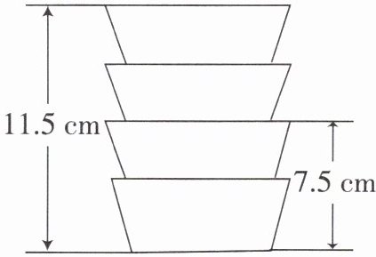 17. 李老师逛超市时看中一套碗,她将碗叠成一摞(如图),测量后发现:将 2 个碗叠成一摞时总高度为 7.5cm,将 4 个碗叠成一摞时总高度为 11.5cm. 若将 6 个碗叠成一摞能放入消毒柜中,则这个消毒柜的内置高度至少有()